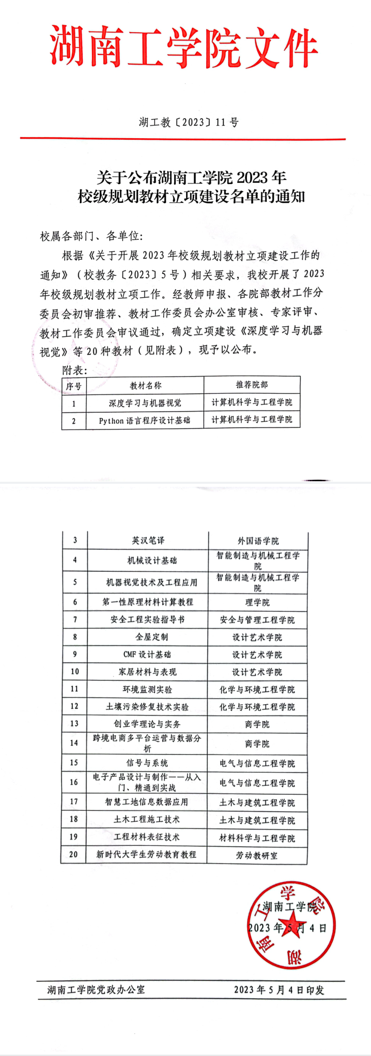 湖工教〔2023〕11号 关于公布英国上市公司官网3652023年校级规划教材立项建设名单的通知