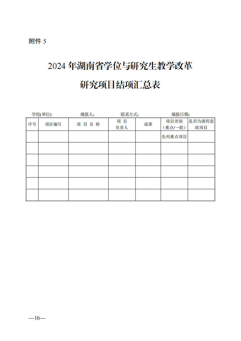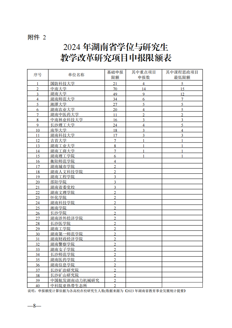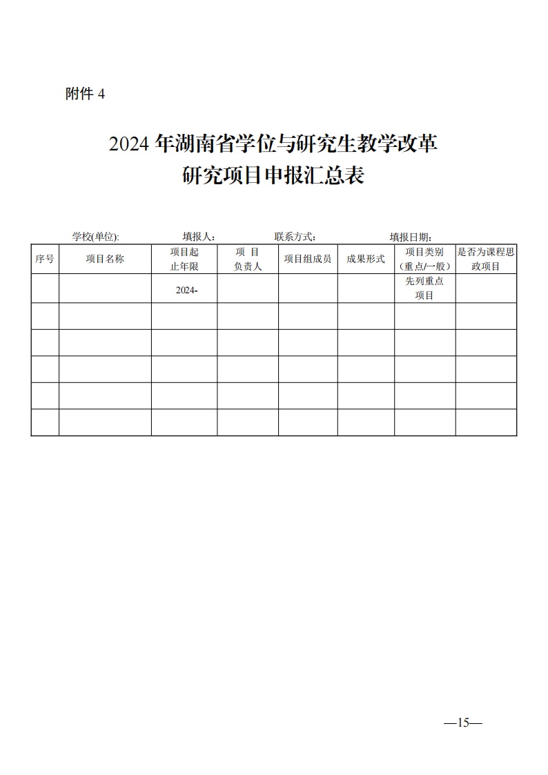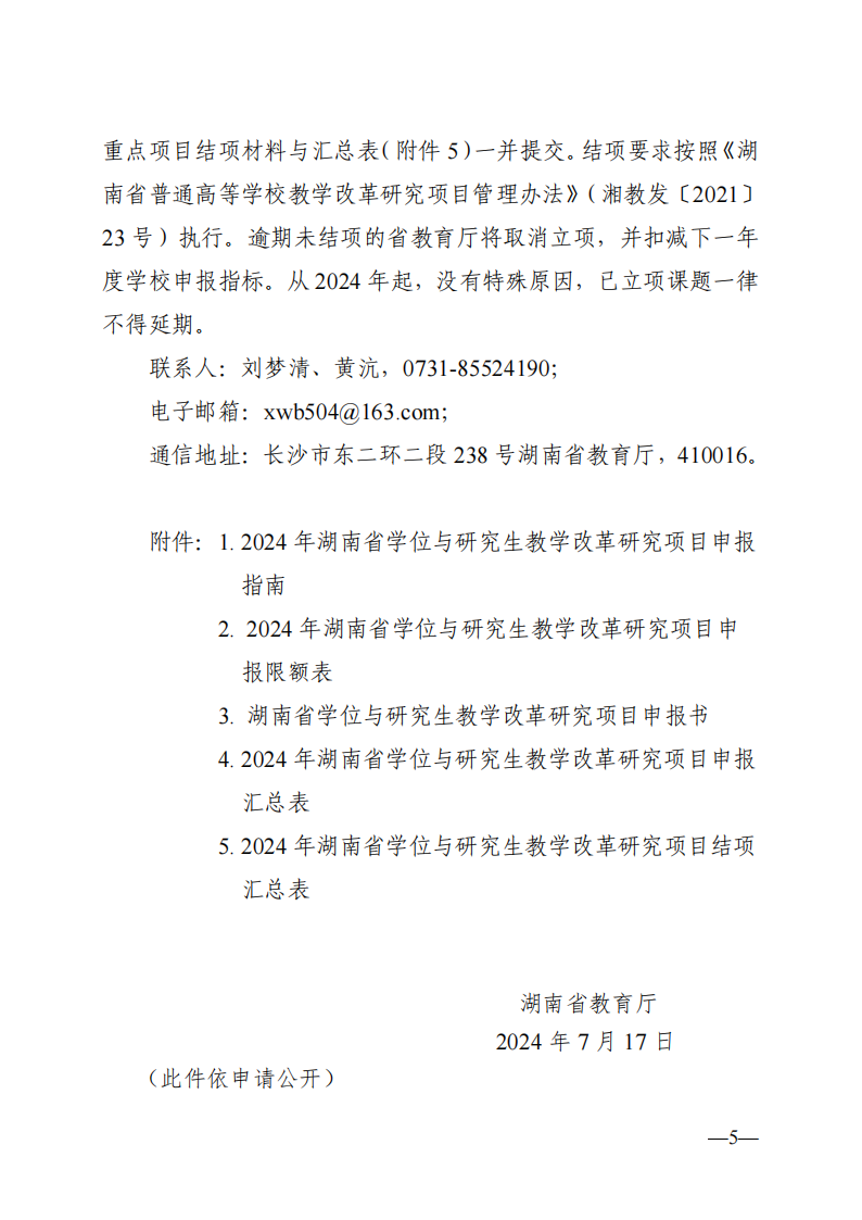 湖南省教育厅关于开展 2024 年湖南省学位与 研究生教学改革研究项目申报工作的通知