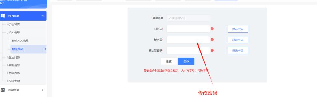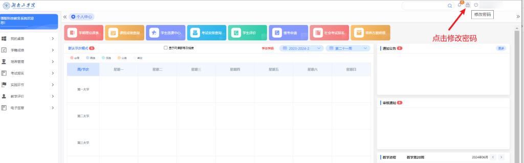 2.请在下周星期四(7月4日0:00)之前完成初始化密码的修改,否则系统账号将会被禁用,需要联系各院部教务秘书解除锁定。