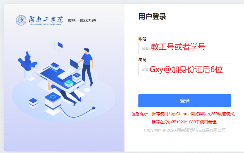 用户登录账号:教工号或学号 初始密码:Gxy@身份证后6位