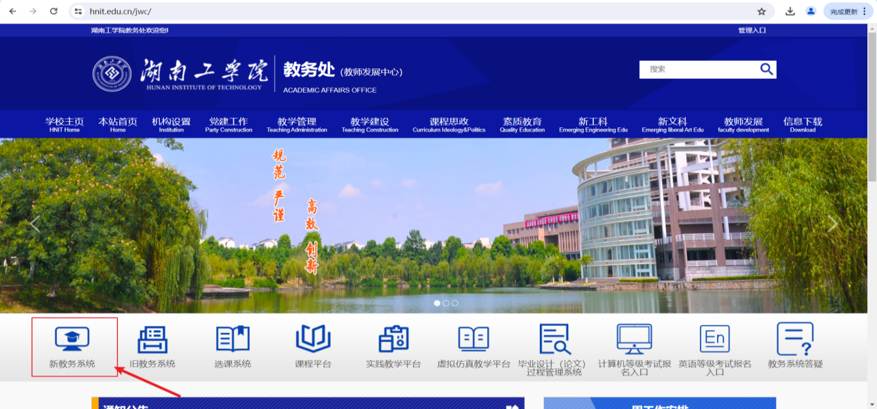 2.通过点击教务处网站首页的“新版教务系统”图标进入(见图一)。