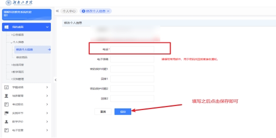2.如已填写需要更改手机号码,可进入个人信息页面修改。