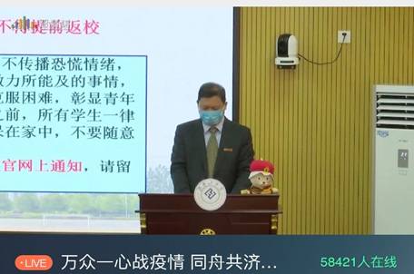 校长罗建华教授以“万众一心战疫情,同舟共济度时艰”为题,他首先介绍了习近平总书记关于打赢新冠肺炎阻击战的总体部署,讲述了在抗疫期间涌现出的典型人物,增强了学生的爱国主义教育;然后,讲授了在疫情期间常见的心里疾病,并提出了具体的解决办法以及学校网络心理援助服务,加强了学生心理健康的疏导;接着,讲授了新冠肺炎病毒防控措施以及英国上市公司官网365防控期间的教学安排;最后,针对疫情期间的学生学习进行深入指导,确保学生学习质量不降低。