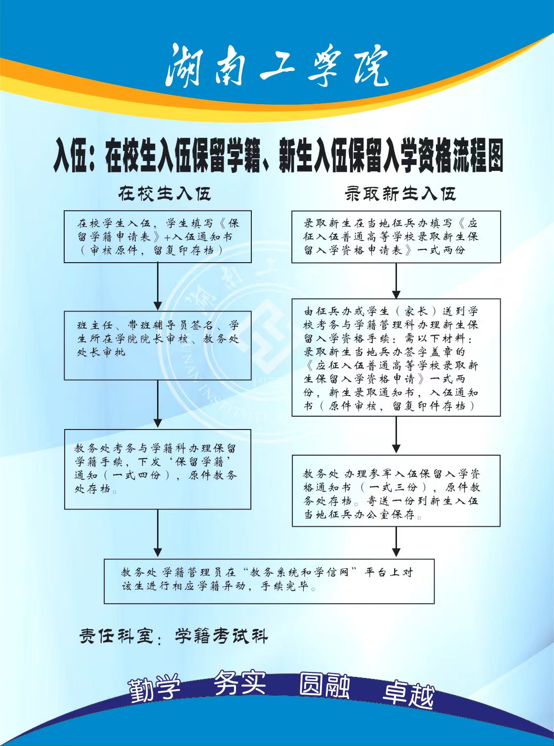 入伍:在校生入伍保留学籍、新生入伍保留入学资格流程图