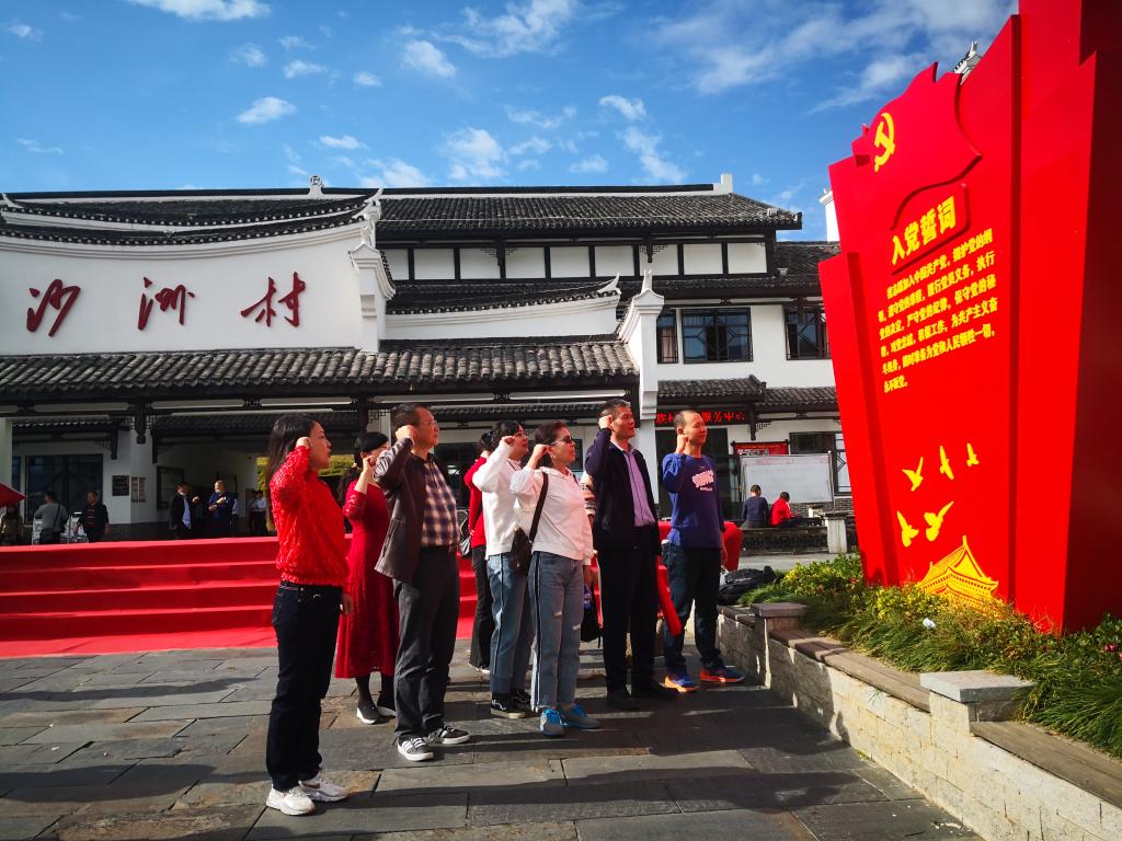 在汝城沙洲村红色文化主题展览厅,全体党员深入、细致,全面、认真地了解学习了党在汝城的革命历史,接受红军长征精神的洗礼, 聆听了徐解秀老人“半条被子”的感人故事,朴实而温情的故事诠释了共产党人全心全意为人民服务的精神,感染了在场的每一位党员干部。大家来到了沙洲村红色文化广场,面对着鲜红的党旗,庄严地举起了右手,重温了入党誓词,那激情昂扬、铿锵有力的声音生动地诠释了争当新时期合格党员,不忘初心的坚定信念。