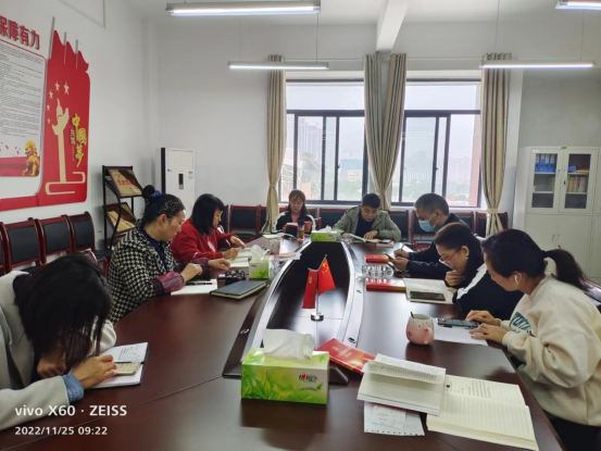 1125午继续教育学院全体教职工在党员活动室专题学习党的二十大精神,会议由李文珊同志主持。