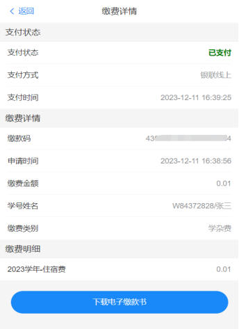 5 、确认订单明细和金额,选择缴费方式后点击 “缴费”;