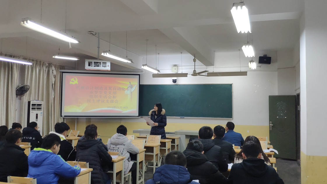 2019年12月18日下午16时,机械设计制造及自动化专业学生党支部在机械楼4413召开了组织生活会和民主评议党员会议。参会人员有副院长肖志信、党支部书记张艳霞及党支部全体学生党员和预备党员。会议由党支部书记张艳霞主持。