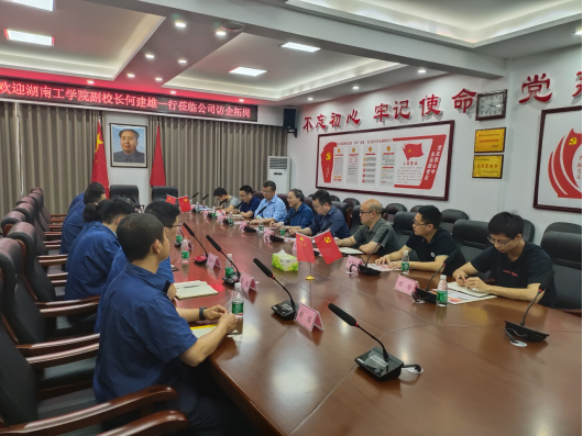 何建雄副校长分别与株洲冶炼集团总经理何献忠、湖南机油泵股份有限公司副总经理谭小平、衡阳运输机械有限公司党委书记黄四元、南岳电控(衡阳)工业技术股份有限公司常务副总经理谭爱平等企业代表就以下方面进行了座谈:一、拓岗就业,拓宽就业专业面,增加就业人数,开拓就业渠道,四家企业均表示增加就业岗位;二、促进校企深度合作,学校专业老师与企业人员共同组建柔性研究团队,开展问题诊断,为企业纵深发展提供智力支持;三、鼓励企业参与人才培养过程、共建产业学院、组建企业教学团队、重构课程体系,依托实习、毕业设计环节提升学生工程实践能力。四、希望企业深度参与“教育部卓越工程师教育培养计划”,以实际工程项目为切入点,让学生掌握企业产品工艺、生产、技术和管理等知识,共同培养卓越工程师。