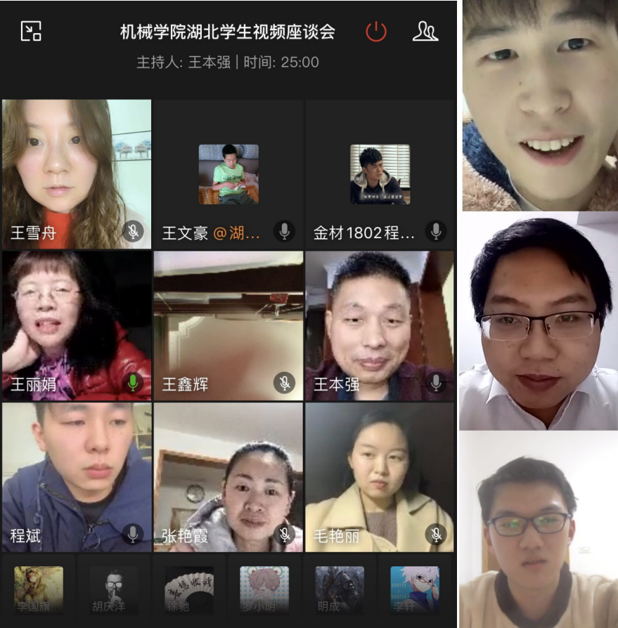 3月19日晚,机械工程学院通过“企业微信”平台组织召开湖北师生视频会议,深入了解目前在湖北省的同学居家学习、生活情况以及现阶段存在的问题和困难等。院党委书记王丽娟、副书记王本强、全体辅导员,以及目前在湖北省的25名学生视频连线,在“云端”举办了一场特殊的“师生座谈会”。会议由院党委副书记王本强主持。