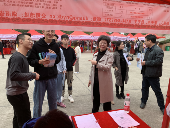 针对衡阳本地的南岳电控(衡阳)工业技术股份有限公司、岳阳长炼机电工程技术有限公司,王丽娟书记详细与负责招聘的总监进行了深入的沟通,并向企业推荐了我院优秀的毕业生同学,并对毕业生进行了专业的就业指导。