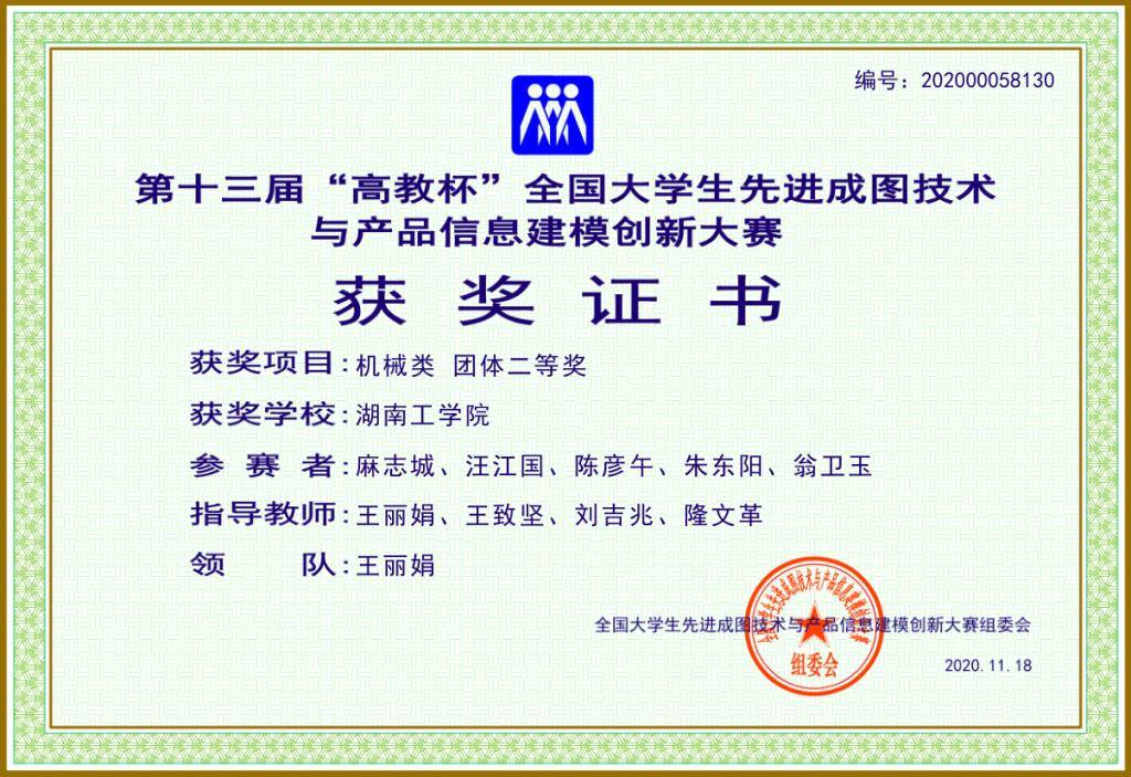 近日,第十三届“高教杯”全国大学生先进成图技术与产品信息建模创新设计决赛在南昌航空航天大学举办。在机械类350多个队伍中,英国上市公司官网365机械工程学院参赛团队以总分第58名的成绩获得团体二等奖,个人单项一等奖13项,二等奖3项,三等奖1项,优秀指导教师二等奖4项,在湖南省机械类参赛队中名列前茅。