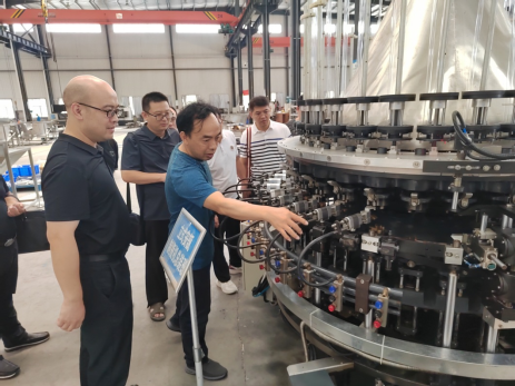 公司总经理盛振华陪同参观生产车间,并在随后的座谈中重点介绍立式安瓿瓶制瓶机组的运行情况、产品特性、市场现状和合作需求。他指出公司自主研发的立式安瓿瓶制瓶机组入选了工信部首台套重大技术装备,具有广阔的市场前景,但与国外最先进的同类设备相比仍然存在进一步优化的空间,希望学院围绕立式安瓿瓶制瓶机组建设专门的技术攻关团队常驻企业,共同开展技术攻关,打造产品核心竞争力,引领国内立式安瓿瓶制瓶机组研发和生产。