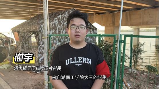 谢宇谈到,作为一名预备党员,他有责任有义务投身于家乡的防汛工作中。同时,这个大堤是他祖父那辈人用肩膀挑着一担担土建起来,他对大堤、对家乡有着很深的感情