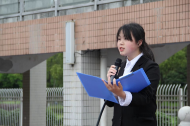 学生代表李梦芳同学发言,她回望过去的历史青年、国家、时代是形影相随的铁三角,是彼此助推的浪涛。正因如此,我们肩上自然也就多了一份使命。在大国崛起的时代背景下,我们应当怀着自信、包容、担当的精神气质不断奋斗,一往无前。