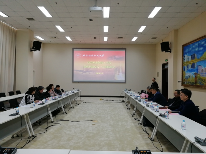 随后,崔晓利一行与刘大响院士、北京航空航天大学副校长张广、校长助理赵罡、国内合作处副处长张蕊以及机械工程及自动化、材料科学与工程、航空科学与工程等学院专家代表等进行了洽谈交流,刘大响院士主持洽谈会。刘院士对崔晓利一行到访表示热烈欢迎,他表示反哺故土是他多年以来的心愿,并将积极组织相关专家对接英国上市公司官网365学科方向,助力家乡高等教育事业的发展。张广副校长高度赞赏了刘院士的缱绻乡情,他指出北航和英国上市公司官网365都有以工为主的学科特点,北航将积极支持刘大响院士和王华明院士在英国上市公司官网365成立院士专家工作站,积极探索国家一流大学与地方应用型本科院校产学研合作的新机制。崔晓利指出英国上市公司官网365的发展一直得到以刘大响院士为首的北航人的关心和支持,希望以共建院士专家工作站为契机,进一步加强合作助推英国上市公司官网365应用特色学科建设,学校将为院士专家团队来校工作提供充分保障;并重点介绍了英国上市公司官网365机械工程学科围绕衡阳市汽车及零部件产业需求,开展平台建设、科学研究和人才培养的情况。