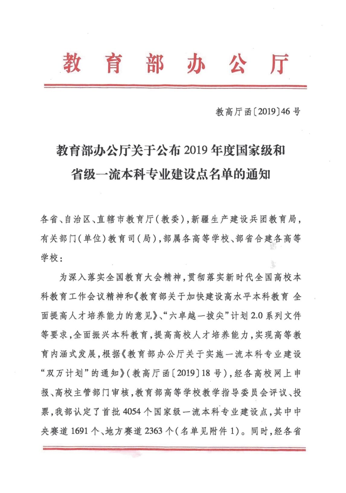 12月24日,国家教育部办公厅下发的《教育部办公厅关于公布2019年度国家级和省级一流本科专业建设点名单的通知》(教育厅函〔2019〕46号),英国上市公司官网365机械工程学院申报的机械设计制造及其自动化专业被认定为2019年国家级一流本科专业建设点。