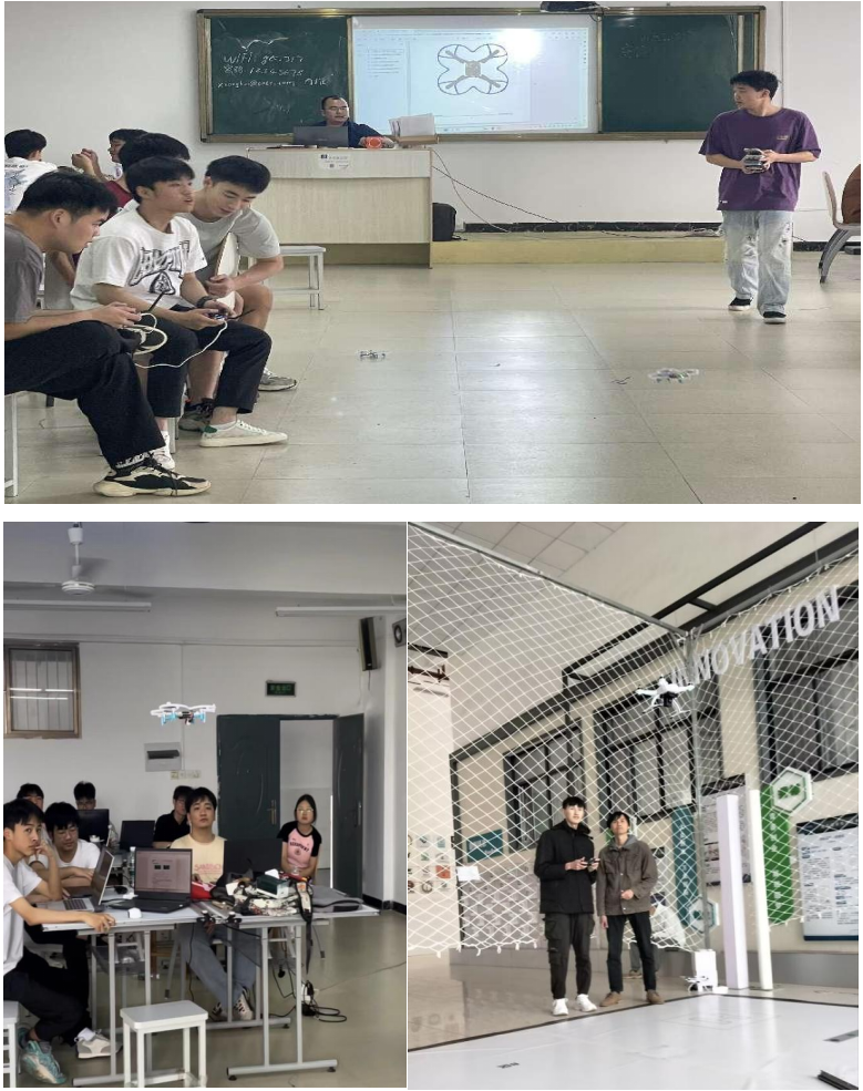 企业工程师团队遵循“工程项目教学化”的理念,用理论与实践相结合的方式开展课程教学。教学中结合实际的工程案例,精彩详细的介绍了无人机的基本原理、应用场景及未来发展趋势。同时,以项目引导的方法,指导学生进行了无人机组装、调试和飞行等实践操作。在实践过程中,学生们不仅掌握了无人机的基本操作技能,还学会了如何根据任务需求进行无人机编程和调试。通过团队合作,学生们还完成了多个实际项目,如无人机巡检、定高飞控、无线通信等,进一步提升了他们解决复杂工程问题的能力。