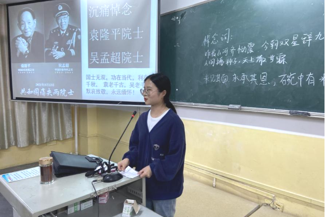 5月22日,一天之内,共和国痛失两位泰斗!一位是为亿万人解决温饱的杂交水稻之父袁隆平院士,一位是悬壶济世救人病痛的中国肝胆外科之父吴孟超院士,双星陨落,举国同悲。为铭记双星丰功伟绩,传承伟人奉献精神,5月24日下午,《机械制图》任课老师王丽娟利用课间时间,带领机设2001班同学进行沉痛悼念袁隆平院士、吴孟超院士逝世的默哀活动,共同缅怀致敬,给学生进行现实版课程思政教育。
