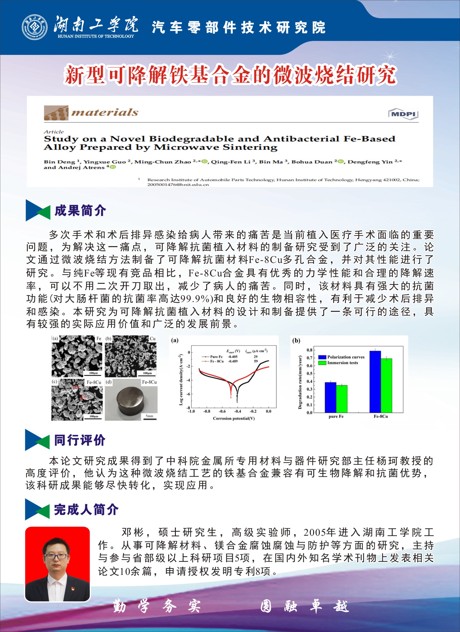 邓彬---新型可降解铁基合金的微波烧结研究