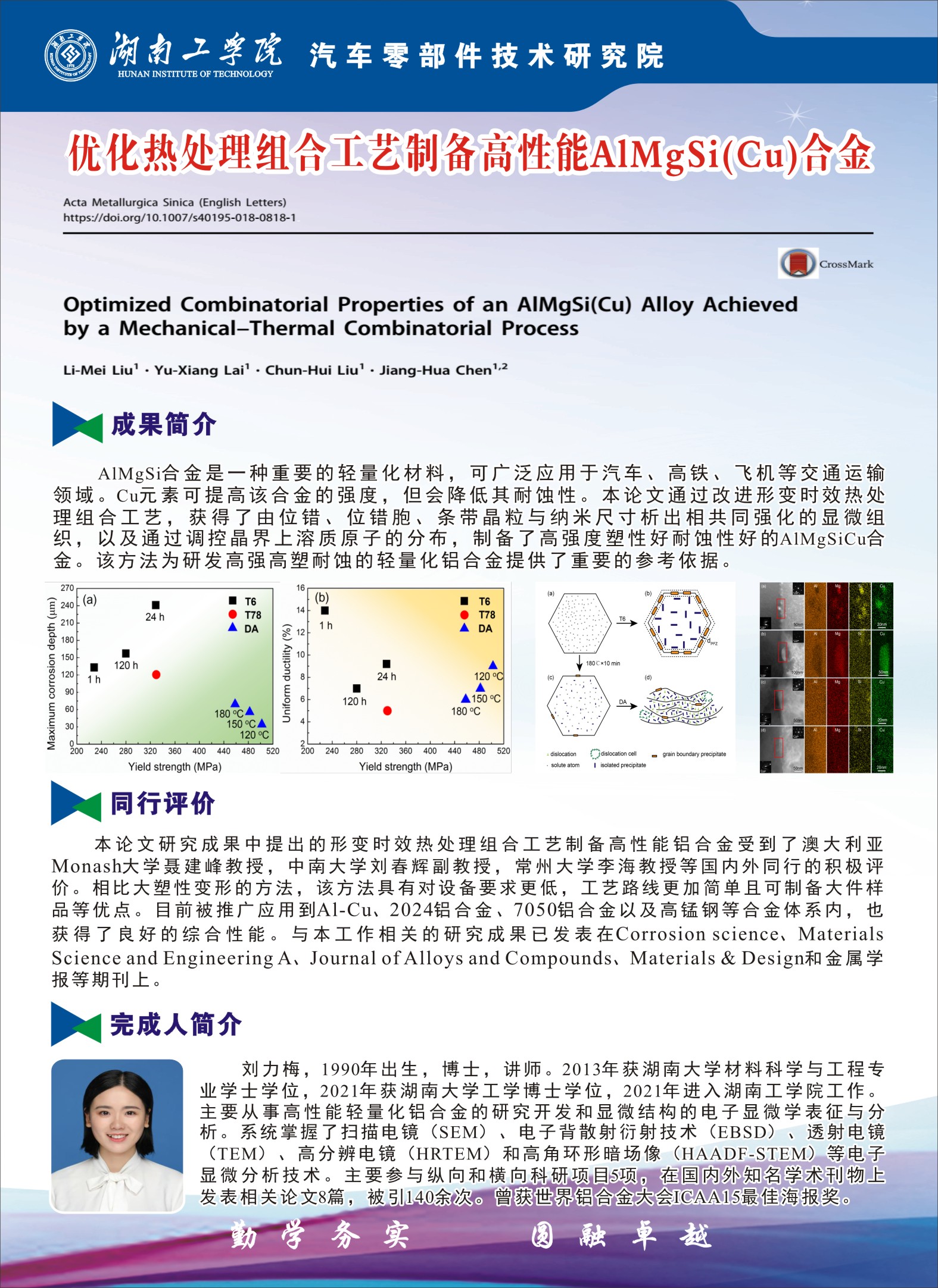 刘力梅---优化热处理组合工艺制备高性能AlMgSi(Cu)合金
