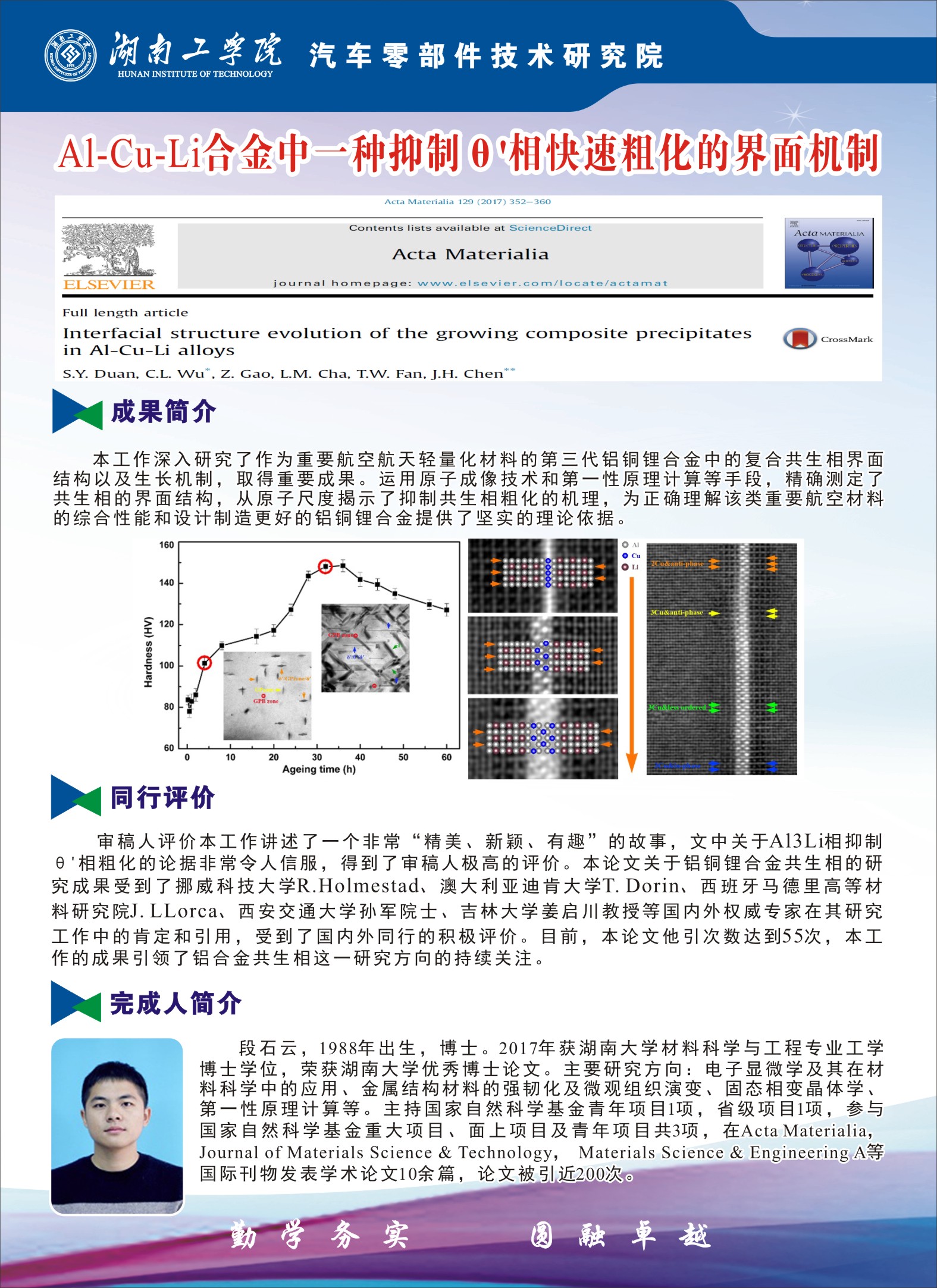 段石云---Al-Cu-Li合金中一种抑制相快速粗化的界面机制