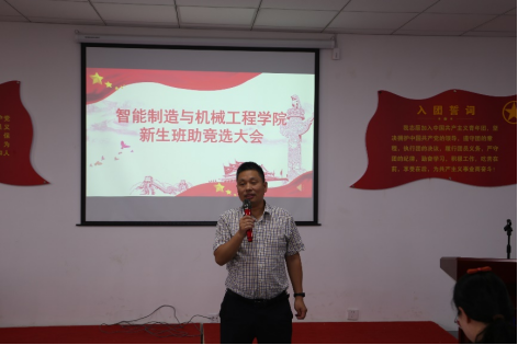 为推进学院“三全育人”综合改革建设,落实朋辈育人理念,激发学生在成长成才中的主体性,把优良学风和校园文化更好地发展和传承6月10日上午,智能制造与机械工程学院2022级新生班助选拔竞聘大会在4401举办。党委副书记王本强、学工办主任王雪舟,以及全体辅导员参加会议。