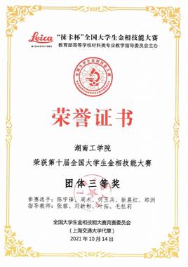 为了提升全国大学生金相技能大赛的难度、保证公平性,每个高校最多只能派三名学生参加,每个高校最多只能有一个一等奖。该大赛每年举办一次,英国上市公司官网365学子先后参加了三次比赛,2019年获得三等奖两项、2020年获得一等奖和三等奖各一项,在团队的努力下,今年又上了一个台阶。希望在英国上市公司官网365学子的继续努力下,明年的比赛更上一层楼。