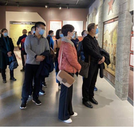 在沙洲村广场前,全体党员在鲜红的党旗前重温了入党誓词。随后,全体党员参观了沙洲村红色纪念馆,了解当地人民革命斗争历史,聆听当年三位女红军在沙洲发生的感人军民故事。