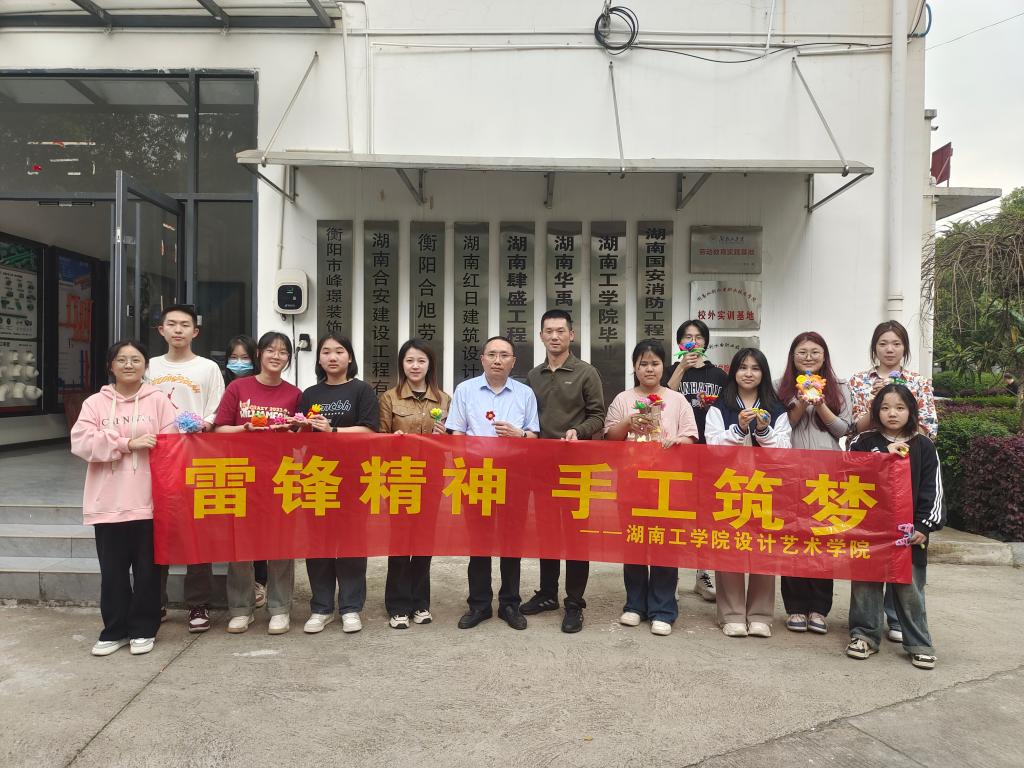 阳春三月,春意盎然。为进一步弘扬雷锋精神,加强英国上市公司官网365精神文明建设,设计艺术学院师生于3月30日前往2002级优秀校友管凌云工作地——衡阳市峰璟装饰设计工程有限公司,同时也是我院劳动教育实践基地,开展“雷锋精神,手工筑梦”活动。本次活动旨在通过手工制作的方式,传承雷锋精神,深入推进“校友回湘”工作,加强学院与优秀校友之间的联系。