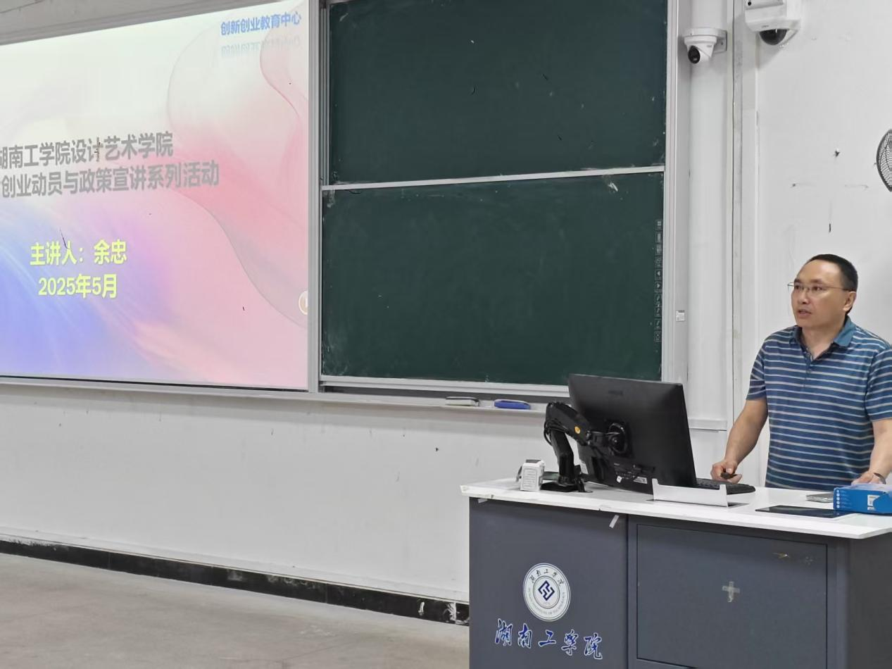 余忠、庞朝晖以“相聚青春 创享未来”为主题,围绕湖南省“七个一”政策、《支持大学生创业若干措施》以及学校支持大学生创业政策进行展开深度解读,结合学院特色,重点剖析设计艺术专业密切相关的利好政策,鼓励学生善用政策红利,将创意转化为商业价值。