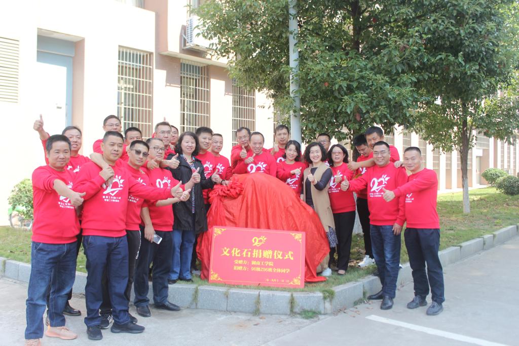 96级制品专业的校友们在建工楼旁给自己向学校捐赠的文化石成功揭幕。随后,张敏致校友欢迎辞,代表学校向校友们表示热烈欢迎,对校友们为此次班会的精心筹备表示衷心感谢,并与校友们笑谈近况。最后,全体校友来到了班会现场,96级制品专业20周年主题班会顺利开展。