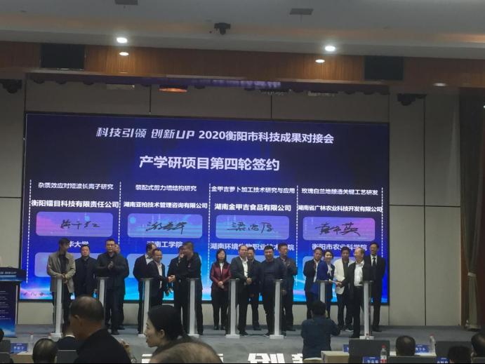 科技引领·创新UP”2020衡阳市科技成果对接会,由湖南省科学技术厅指导,衡阳市人民政府主办,衡阳市科学技术局、衡山科学城管理委员会承办。来自各中国科学研究院、北京大学、上海交通大学等知名高校院所、科技企业、金融投资、科技服务、双创服务机构的代表齐聚,共同见证和书写衡阳创新发展新篇章。湖南省科技厅副厅长、民建湖南省委副主委朱皖,衡阳市人大常委会副主任李鹏飞,衡阳市副市长龚学余出席活动。