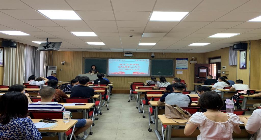 党委书记张帆就立德树人目标和师德师风建设提出要求和希望,一是牢记教育初心,担当教育使命。把“为党育人、为国育才”刻在自己的职业初心和事业使命的标尺上;把“为人民而设计”的理念,融进教书育人、设计创作、服务社会的实践中。二是践行师德规范,坚守教育情怀。以“四有好老师”“四个引路人”“四个相统一”严格要求自我,做到以德立身、以德立学、以德施教。三是做好职业规划,坚持终身学习。要不断树立终身学习意识,提高自身专业素养;要结合学院学科专业规划,加强设计教育研究;要积极参与社会项目服务,把握前沿设计动态。