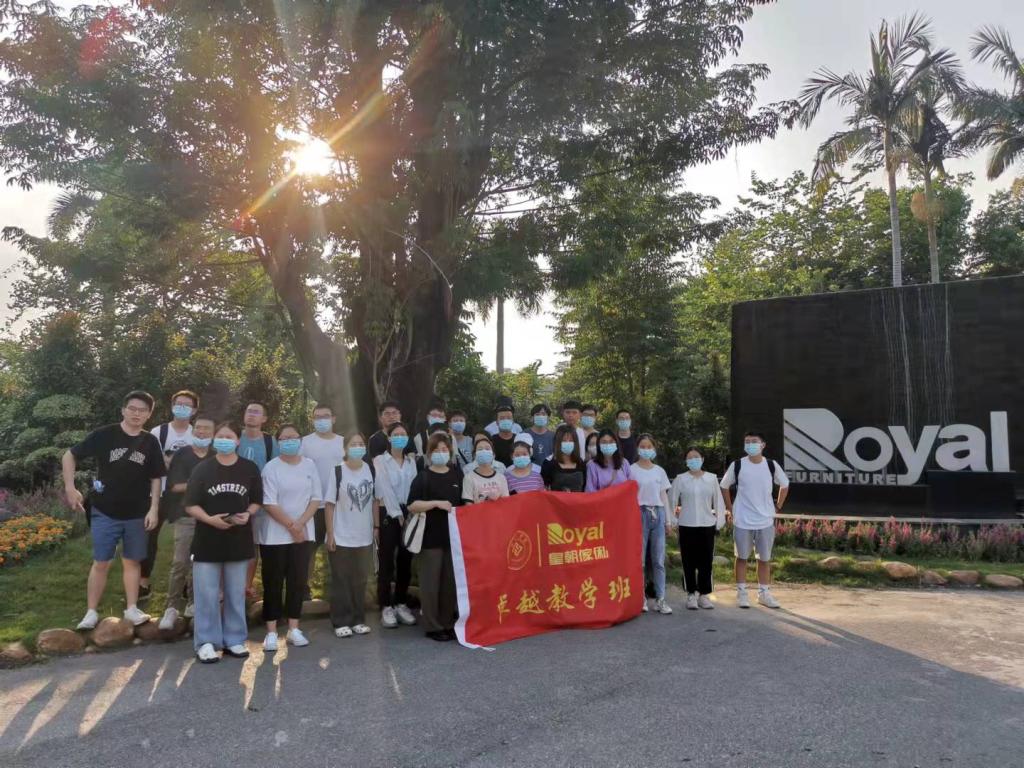 皇朝家居控股有限公司的人力资源部的负责人早已在高铁站安排专车等待着同学们,大巴车到达公司后,给同学们发放了口罩以及学习用品。同学们按照分配好的宿舍整顿行李后安排用餐,接下来进行为期一个月的企业轮岗培训,然后走向各自岗位定岗实践。