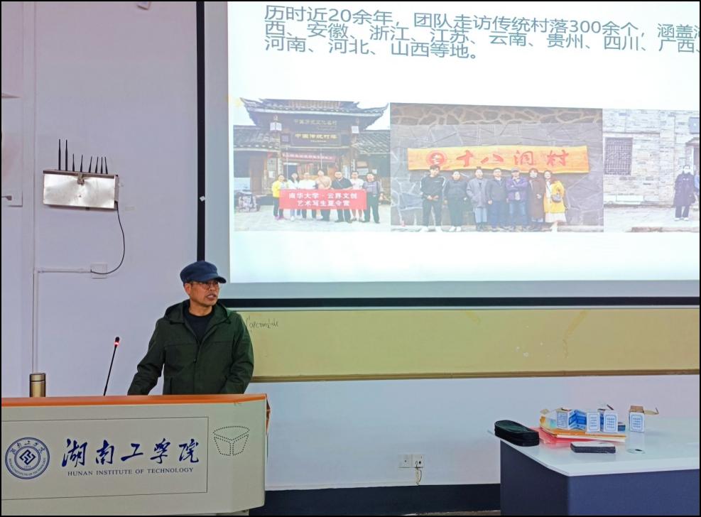 11月24日下午,南华大学陈祖展教授应邀走进我院,在4409教室为师生作了一场题为“寻梦乡愁——设计助力乡村振兴研究与实践”的学术讲座。副院长朱永忠主持,各教研室老师及80多名学生聆听了讲座。