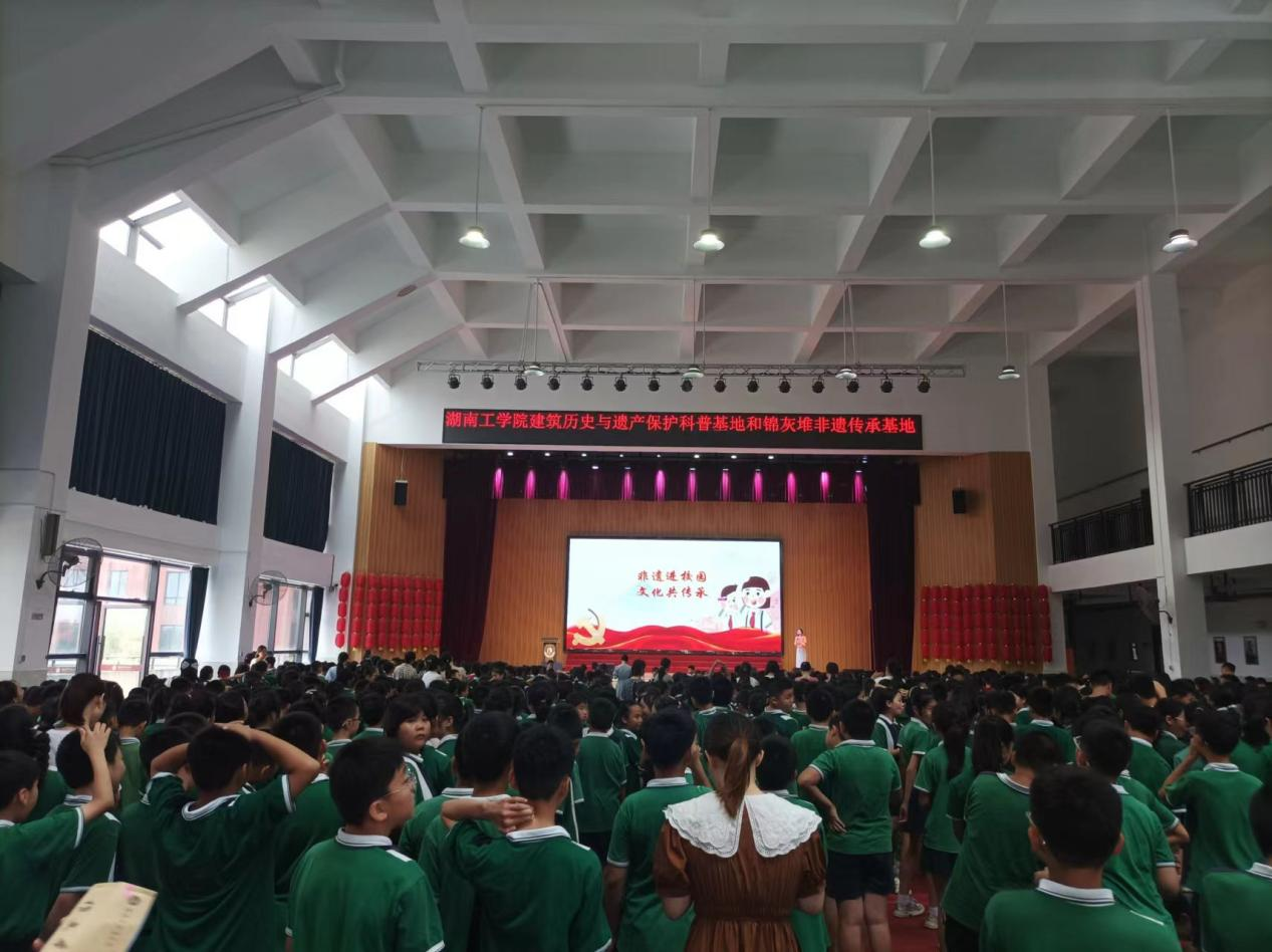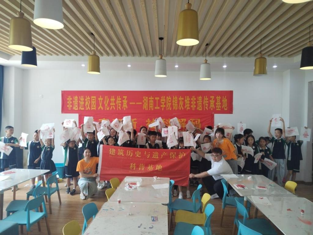 为响应2024年湖南省社科联“三高四新·社科解码”社科普及活动的号召,培养中小学生“爱国爱党”“传承非遗文化”的精神,6月24日上午,英国上市公司官网365建筑历史与遗产保护科普基地、英国上市公司官网365锦灰堆非遗传承基地联合衡阳珠晖区可津小学,共同举办了“童心向党,红色建筑,非遗传承”主题科普活动。