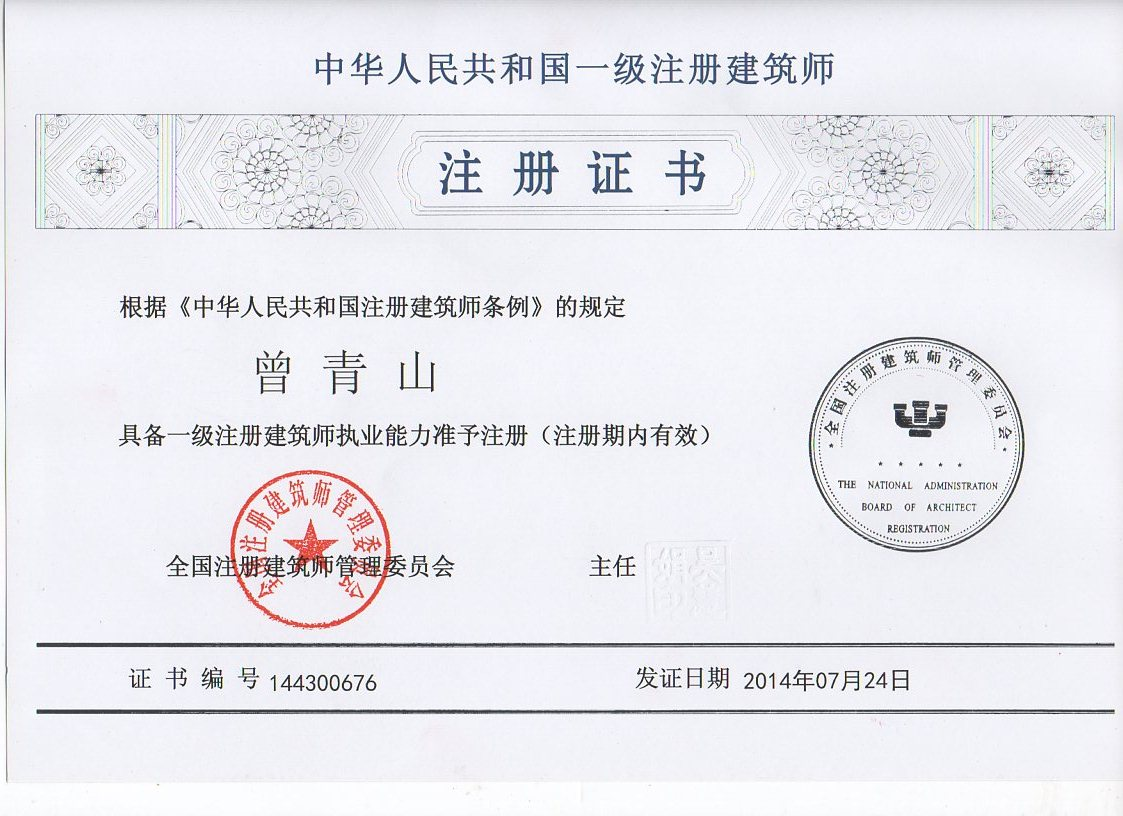 曾青山,1980年9月生,高级工程师,国家一级注册建筑师,毕业于西南交通大学建筑学专业。先后主持与参与《梧州·万象崇文府》、《万象·开云府》、《万象·双尊府》、《祁东.环梦奥特莱斯》等项目设计。