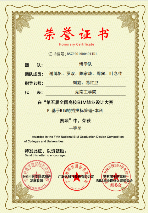(2)“第五届全国高校BIM毕业设计大赛”全国一等奖。