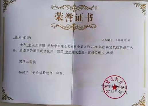(2)中国建设教育协会举办的“2020年数字建筑创新应用大赛”荣获全国二等奖