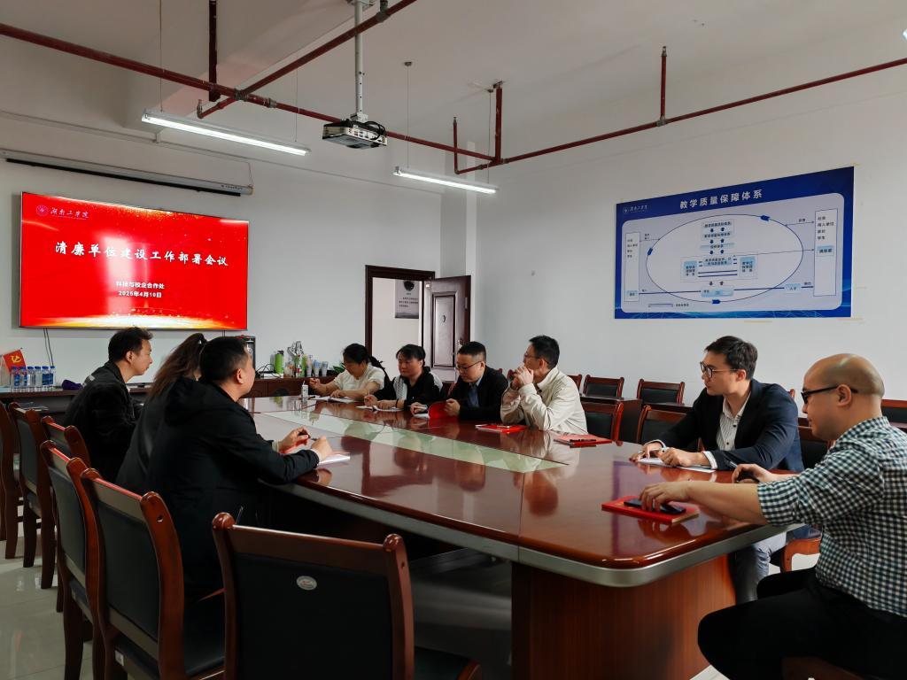 为深入贯彻落实学校第三批清廉单位达标创建工作部署要求,扎实推进清廉校园建设,4月10日上午,科技与校企合作处在教学大楼815会议室召开专题动员部署会议。处长吴远志主持会议并作动员讲话,部门全体教职工参加会议。