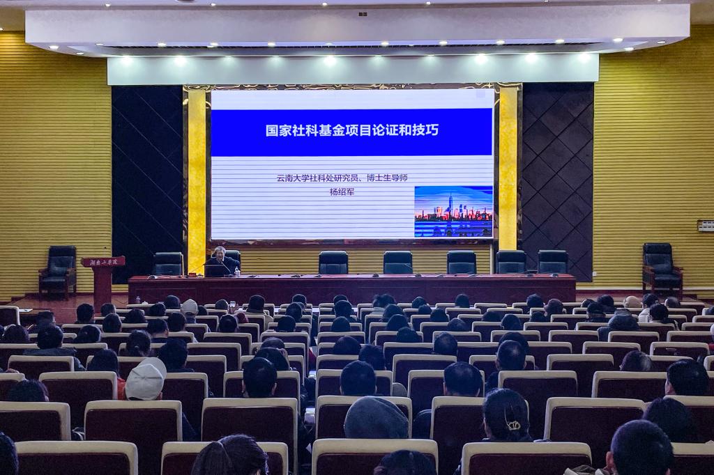 1月19日下午,云南大学社科处处长杨绍军教授应邀来英国上市公司官网365开展题为“国家社科基金项目论证和技巧”的学术讲座。讲座由校党委委员、副校长何建雄教授主持,英国上市公司官网365人文社会科学学科归属二级院部所有任课教师和科研人员、科技与校企合作处相关负责同志参会。