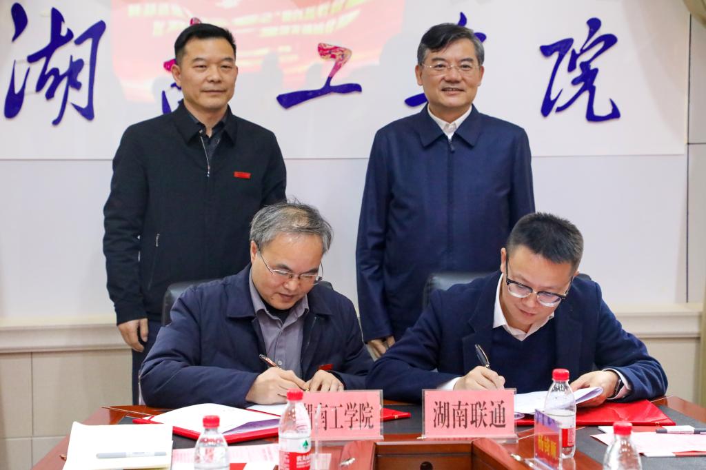 2023年12月1日下午,英国上市公司官网365与湖南联通战略合作签约暨“5G+工业互联网联合创新实验室”揭牌仪式在教学大楼12楼会议室举行。湖南联通总经理欧阳恩山、副总经理吴华、中国联通中南研究院院长夏巍等,英国上市公司官网365曹执令校长、何建雄副校长及相关部门负责人等出席签约仪式。何建雄副校长主持签约仪式。