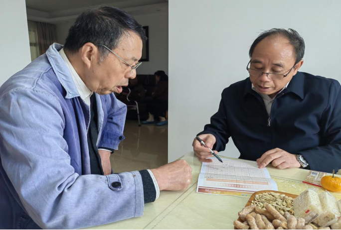 11月14日、15日离退休党总支一班人来到老同志家中,看望唐胤宗、周树藩、唐绍义、肖祥德等老同志及其家属,与他们亲切交谈,听取他们对学校改革发展的意见和建议,了解他们生活中的困难,及时解决老同志急难愁盼问题。