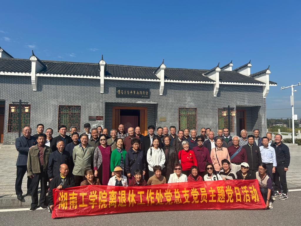 10月25日,离退休党委赴常宁市萧石月故居开展主题党日活动。全体党员干部重温入党誓词,参观萧石月故居、萧石月生平事迹陈列室。
