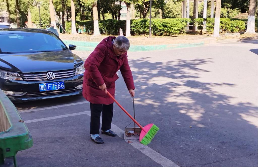 活动现场,老同志们自带扫帚、簸箕等清扫工具,自由组队、分工合作。他们平均年龄70多岁,最大年龄89岁,有的已满头银发,有的已呈耄耋之态,但在清扫落叶和垃圾的过程中一丝不苟、认真负责,忙碌的身影成为了社区马路上一道道亮丽的风景线。老党员周柏荣说,作为老党员,我们有义务、有责任在力所能及的范围内参加志愿服务,为营造干净、整洁、舒适的小区环境贡献绵薄之力,争取向“夕阳晚景映松柏,银发应衬党旗色”的境界看齐。