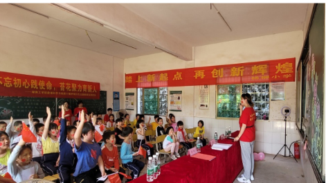 值中国共产党100年华诞之际,数能学院红色教育实践团队为祁东县鸟江镇杨柳小学筹划了一场以红色党史宣传进校园的活动。
