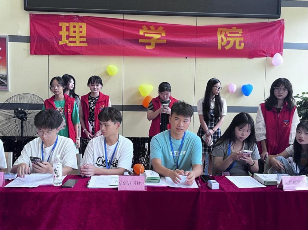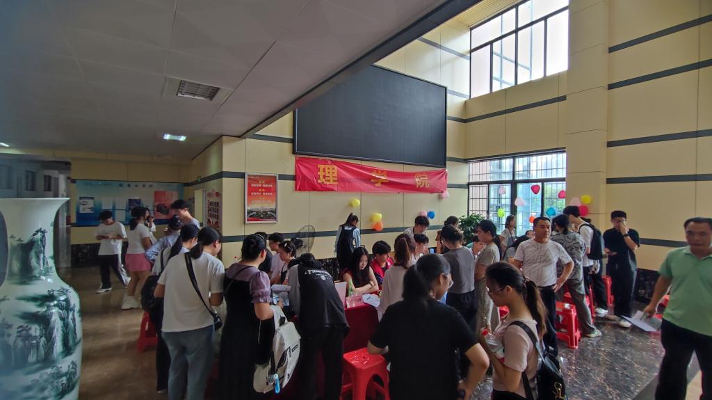 理学院党委书记宁清平、院长刘璟忠、副书记何雪华、副院长谢忠祥、副院长邓元祥、学工办主任兼分团委书记张艳霞到现场指导迎新工作并详细了解新生报到情况。