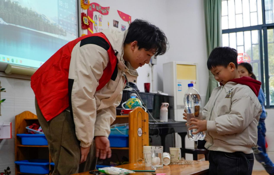 据悉,长期以来,理学院与清泉山社区通过共建劳动教育实践基地,打造了“脱颖儿出”、“益童成长”、“为爱童行”等志愿服务品牌项目。下一步,理学院将继续充分利用学科专业优势助力幼儿教育在“双减”中做好科学教育加法,为推进幼儿园科学教育贡献青春力量。(文/钟欣 任静 图/詹厦宇 审稿人/一审:任静 二审:傅娜 三审:刘璟忠)