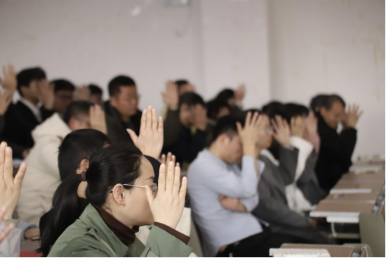 会议在庄严的国歌声中开始。会上,上一届党委班子成员刘璟忠同志代表学院党委向党员大会作工作报告。报告全面回顾总结了上一届党委在党建工作、教学科研、师资队伍与人才培养等方面开展的工作、取得的成绩,深刻分析了学院事业发展存在的短板和不足、面临的形势和挑战,对今后五年学院的发展目标和主要任务进行了安排部署。与会党员认真听取并审议通过了《理学院党委工作报告》。